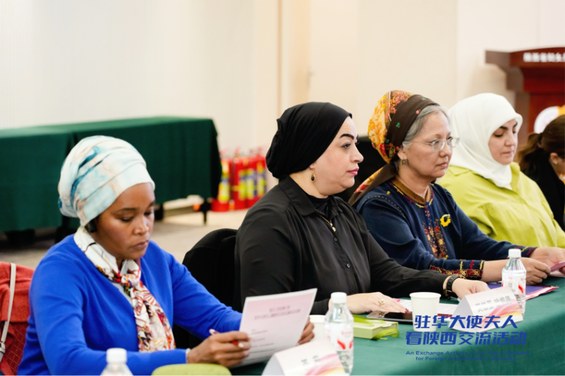 驻华大使夫人在交流座谈会上认真聆听“从发放676亿元创业贷款助力女性逐梦,到建成1.8万个村(社区)妇女议事会守护权益;从培树190余万户优秀家庭涵养家风,到承办二十国集团妇女会议搭建国际平台,陕西妇联始终以‘精准服务’为血肉,让妇女发展的每一步都走得坚实有力。”王玉娥特别提及习近平主席在全球妇女峰会上提出的“四点建议”,强调陕西愿以丝路为桥,与各国共筑“她未来”,让平等、发展、合作的种子在更多女性心中生根发芽。