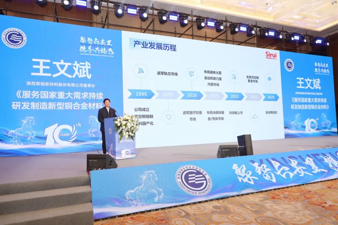 陕西省工商联副主席、陕西斯瑞新材料股份有限公司董事长王文斌以《服务国家重大需求持续研发制造新型铜合金材料》为题,分享了多年来企业紧扣国家战略、深耕科技创新的宝贵经验,勉励青年企业家紧盯国家重大需求,在推动制造业高质量发展中展现新作为。