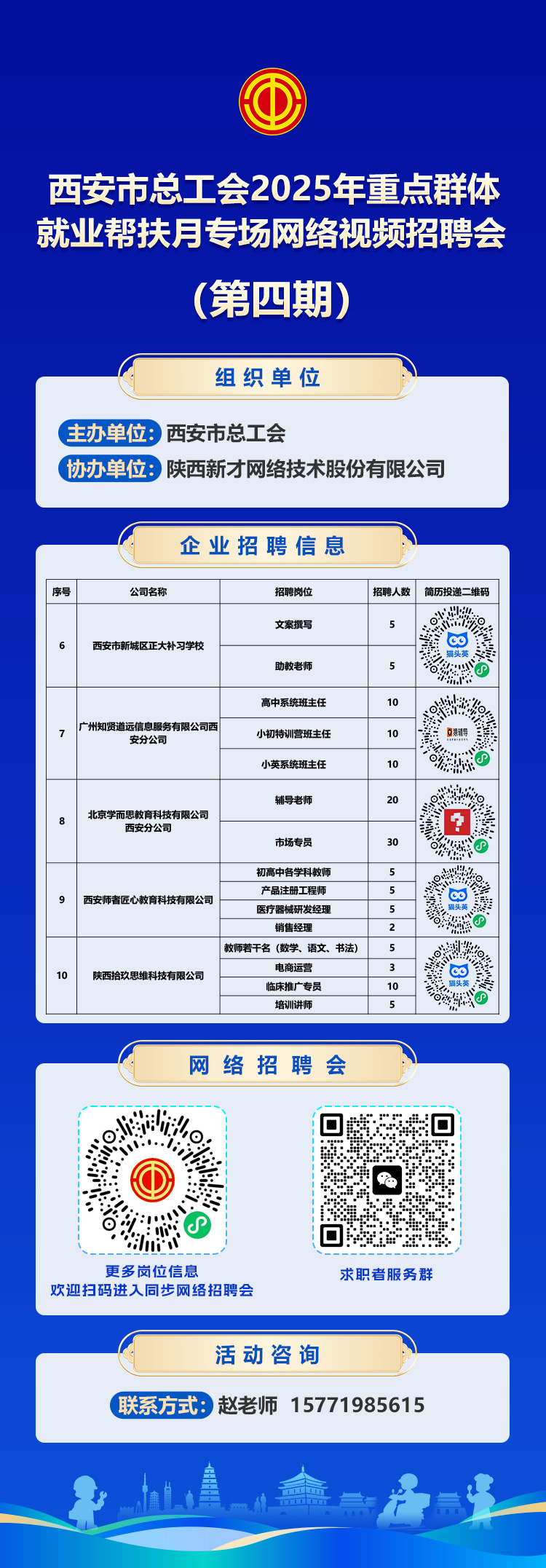 第四期:文体教育类,西安市总工会2025年重点群体就业帮扶月专场网络视频招聘会