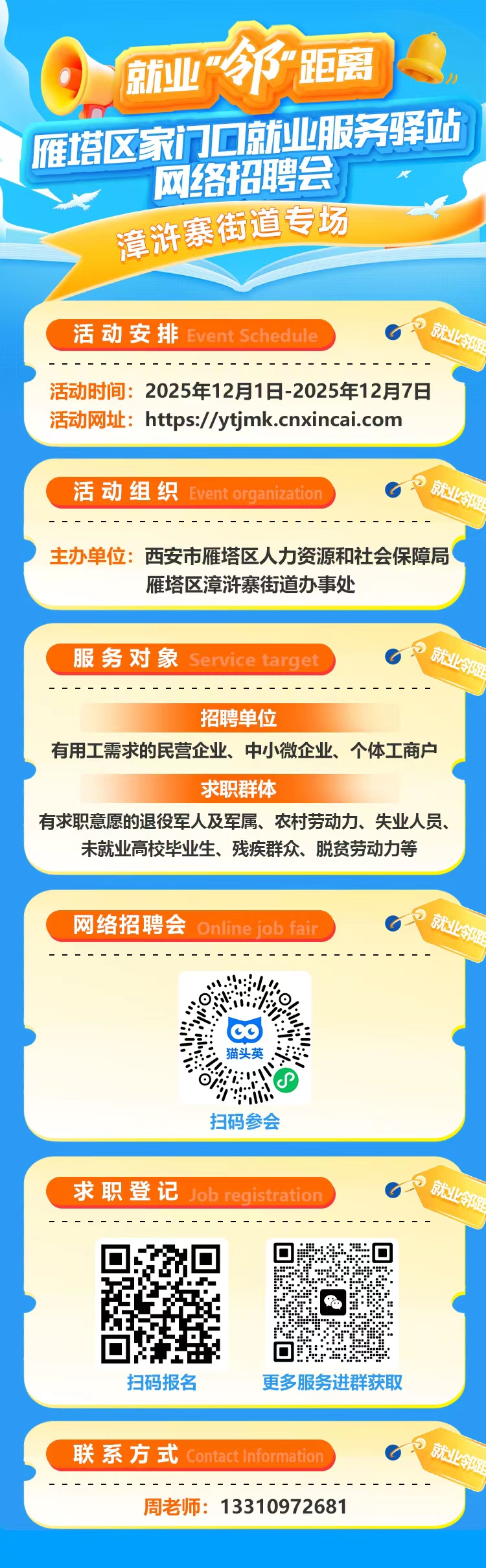暖心就业不打烊!雁塔区漳浒寨街道专场网络招聘会邀您参与