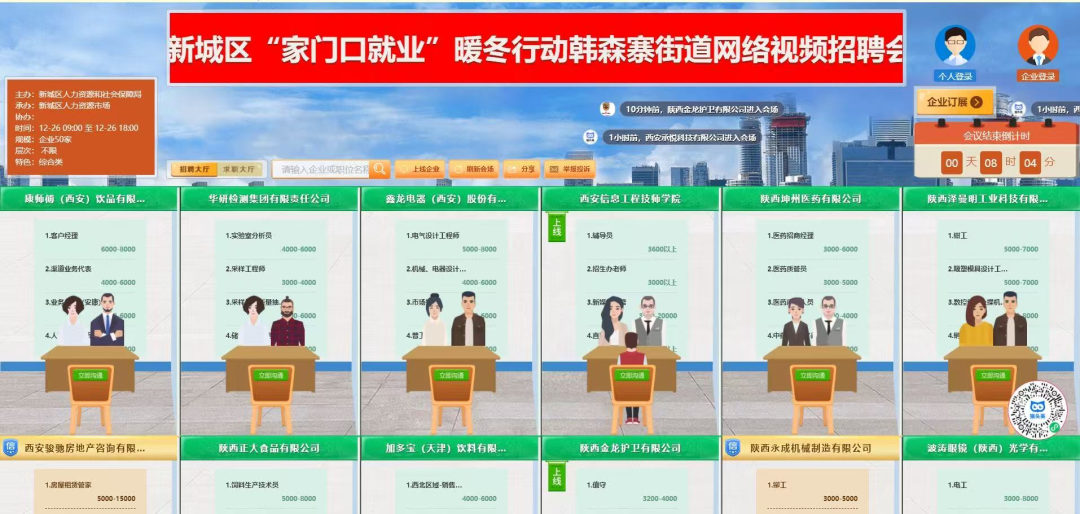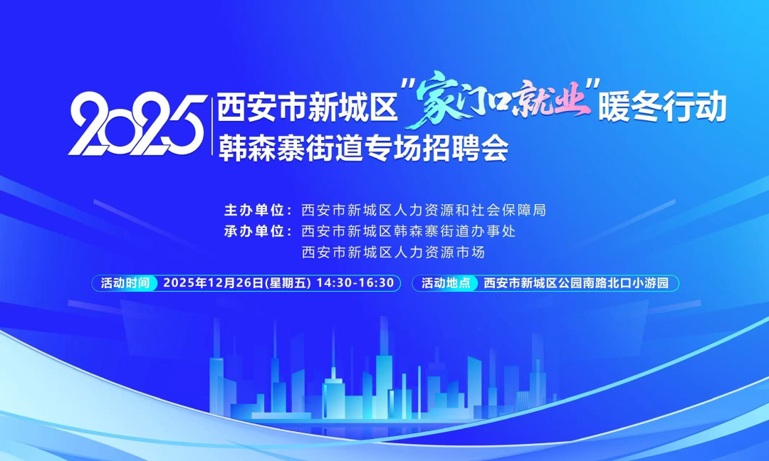 12月26日下午,在新城区公园南路北口小游园举办“暖冬行动”韩森寨街道专场招聘会,随着招聘会的顺利收官,2025年暖冬行动系列招聘活动正式画上圆满句号。本次系列招聘活动精准聚焦辖区群众就业需求,深入9个街道开展9场专场招聘活动,将暖心的就业服务送到群众家门口。
