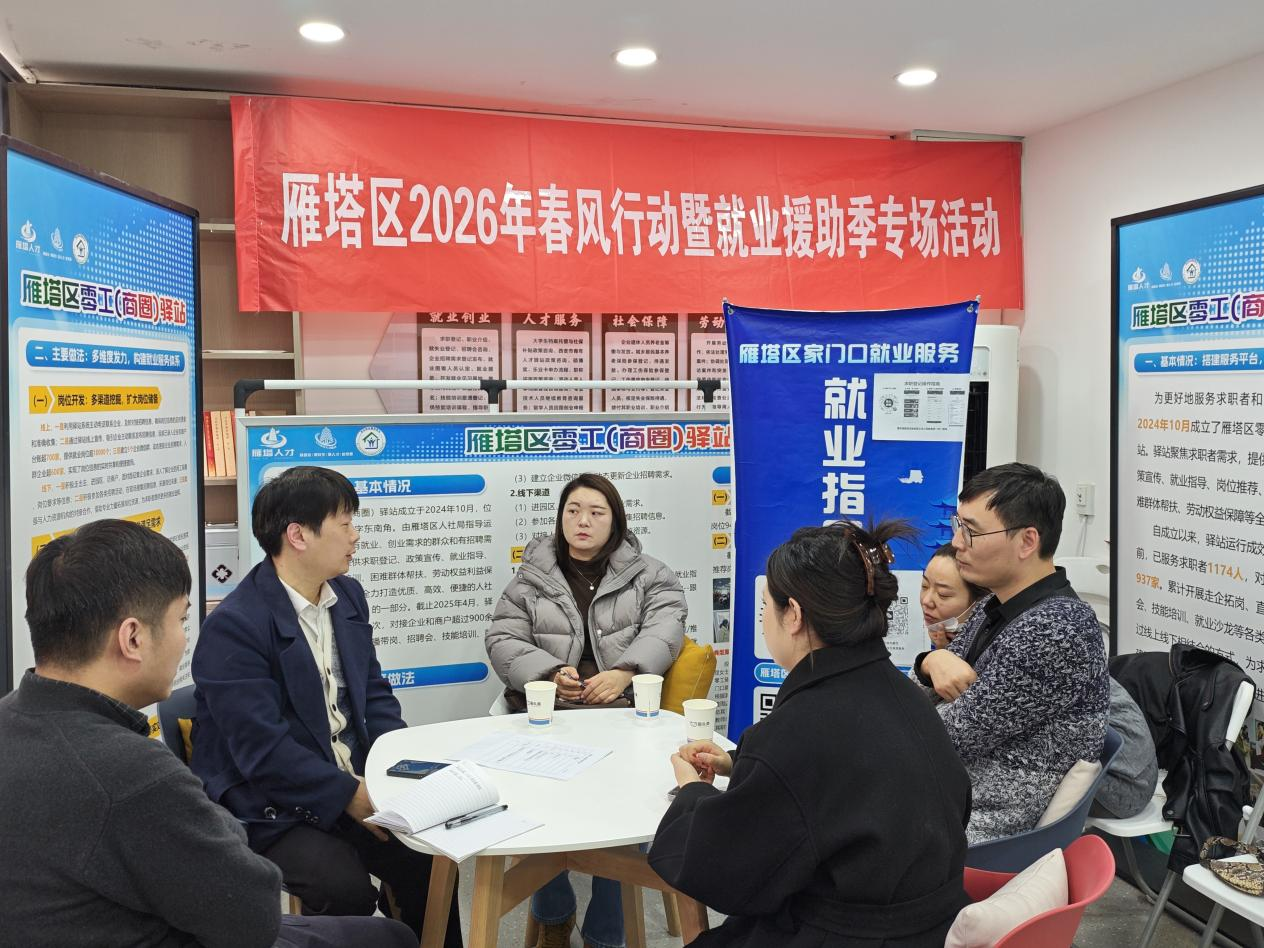 2月6日下午,在雁塔区吉祥路十字东南角的零工驿站内,雁塔区人力资源和社会保障局举办了“雁塔区2026年春风行动暨就业援助季就业指导活动”。活动聚焦“春风送岗促就业,真情相助暖民心”主题,为辖区求职者及就业困难群体带来一场面对面、心贴心的就业服务体验。