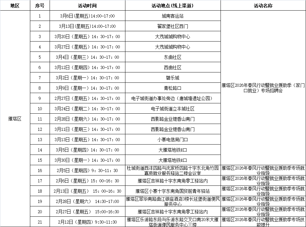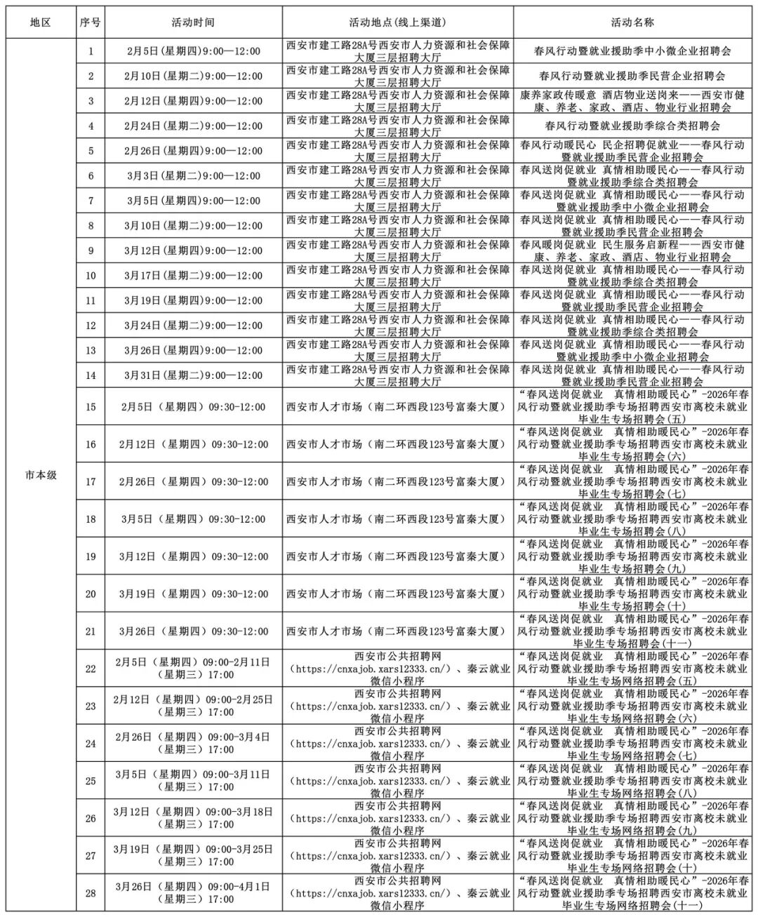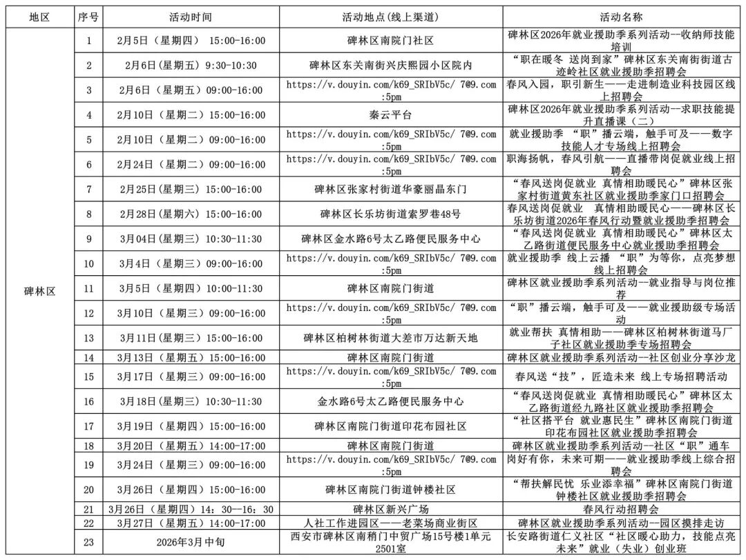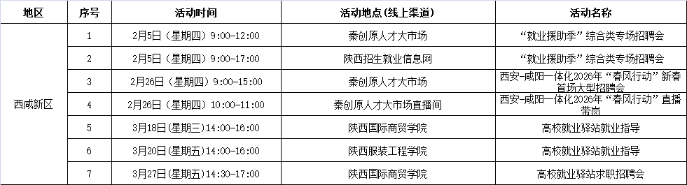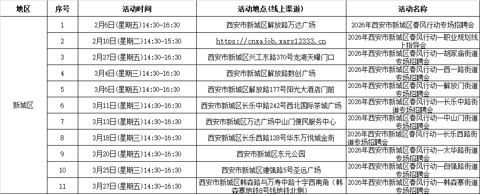 2026年西安市春风行动暨就业援助季活动安排