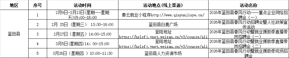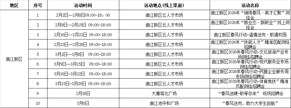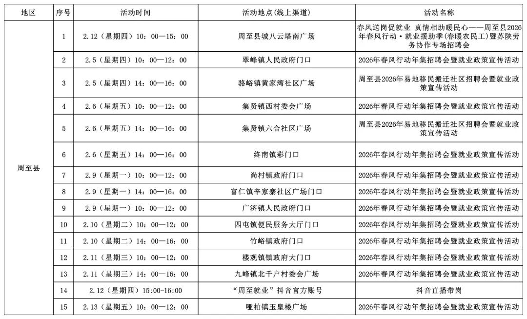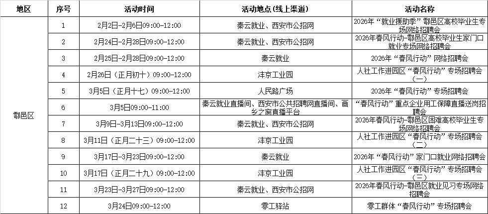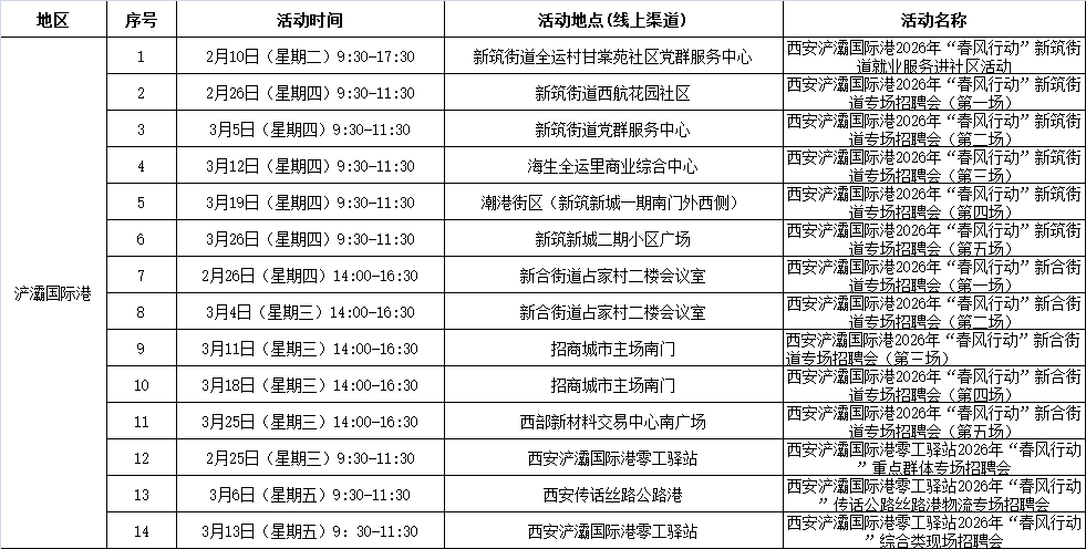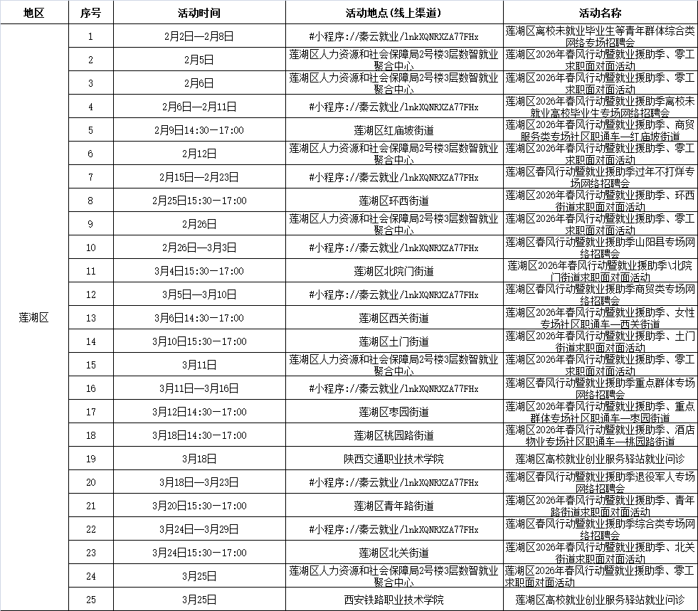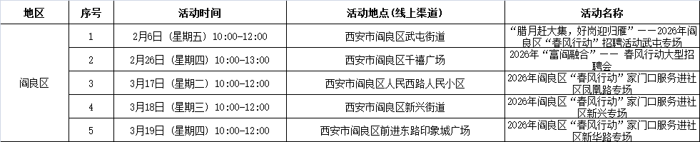 2026年西安市春风行动暨就业援助季活动安排