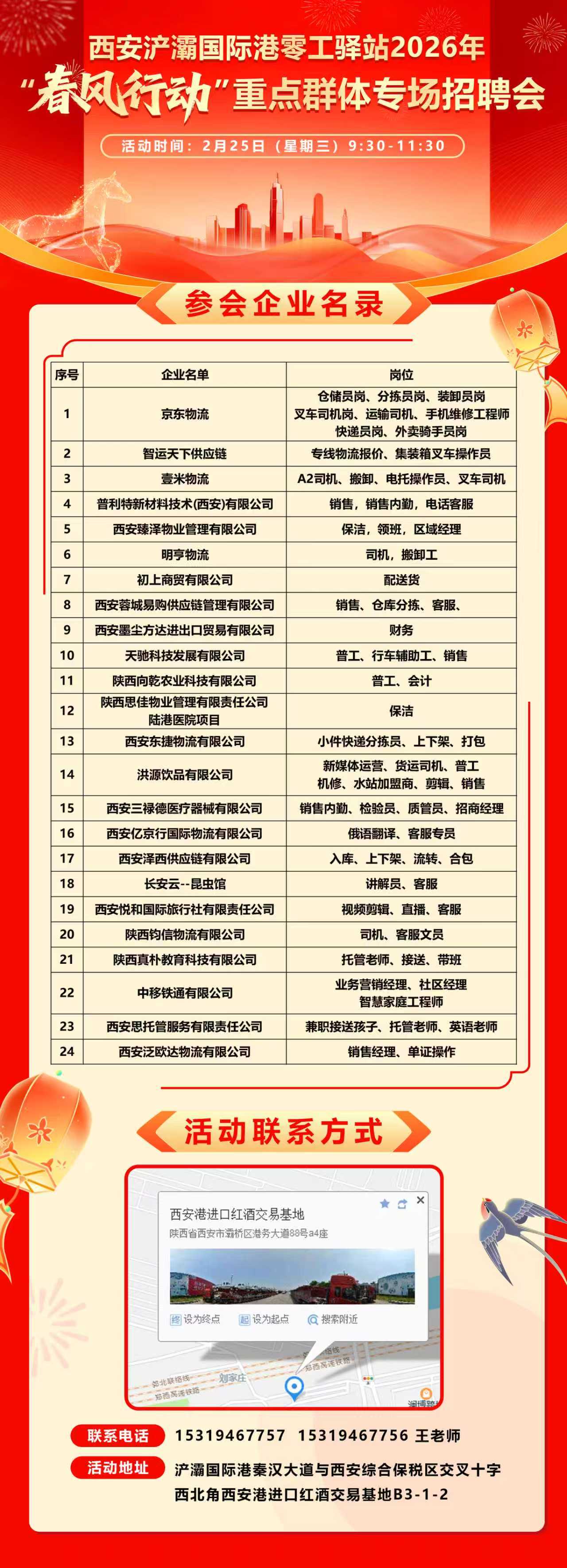 西安浐灞国际港零工驿站2026年“春风行动”重点群体专场招聘会