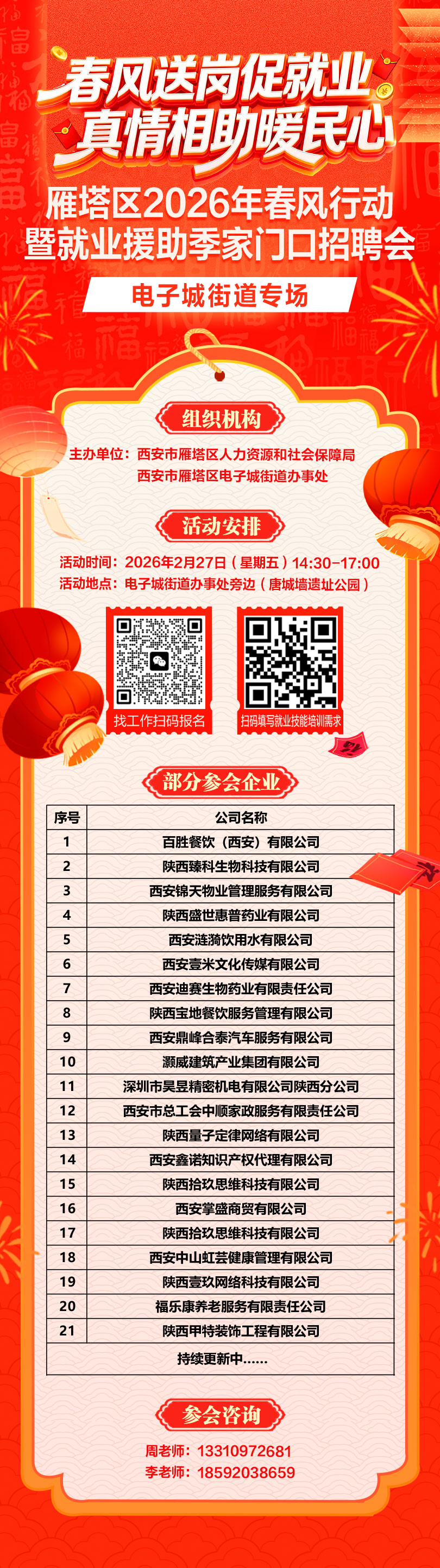 就业援助季·春风送岗来!雁塔区电子城街道专场招聘会2月27日与您相约
