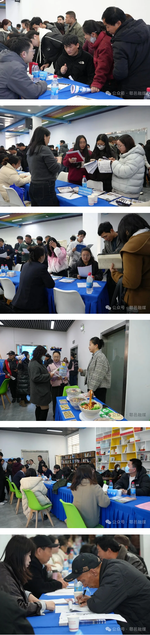 招聘现场人头攒动、秩序井然,企业招聘展位整齐排布,求职者手持简历有序咨询、洽谈对接,招聘氛围热烈务实。