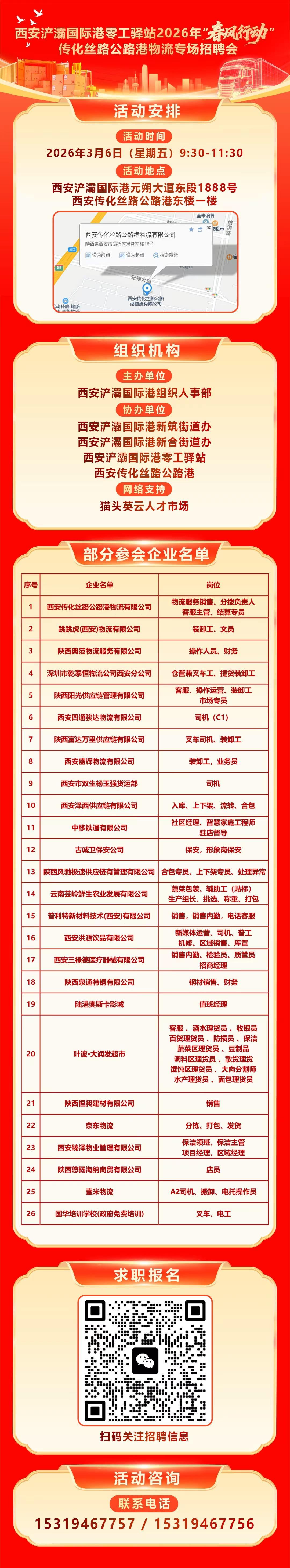 西安浐灞国际港零工驿站2026年“春风行动”传化丝路公路港物流专场招聘会