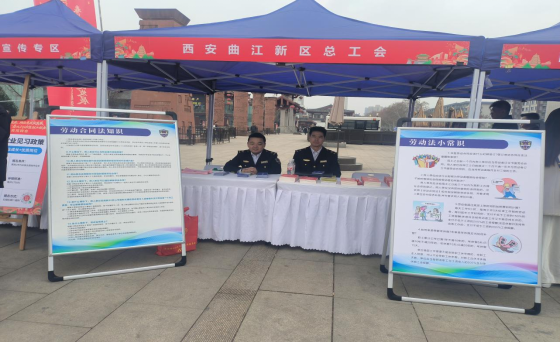 3月6日的大雁塔北广场,人头攒动、春意盎然。招聘会现场分为企业招聘区、政策服务区、技能展示区等功能区域,线下招聘会于14:00-17:30有序开展,线上网络招聘会同步在“曲江新区云人才市场”平台开启,形成“线上+线下”联动服务格局。曲江新区劳动监察设立的“劳动权益保障服务专区”,成为现场一道亮眼的“法治风景线”。