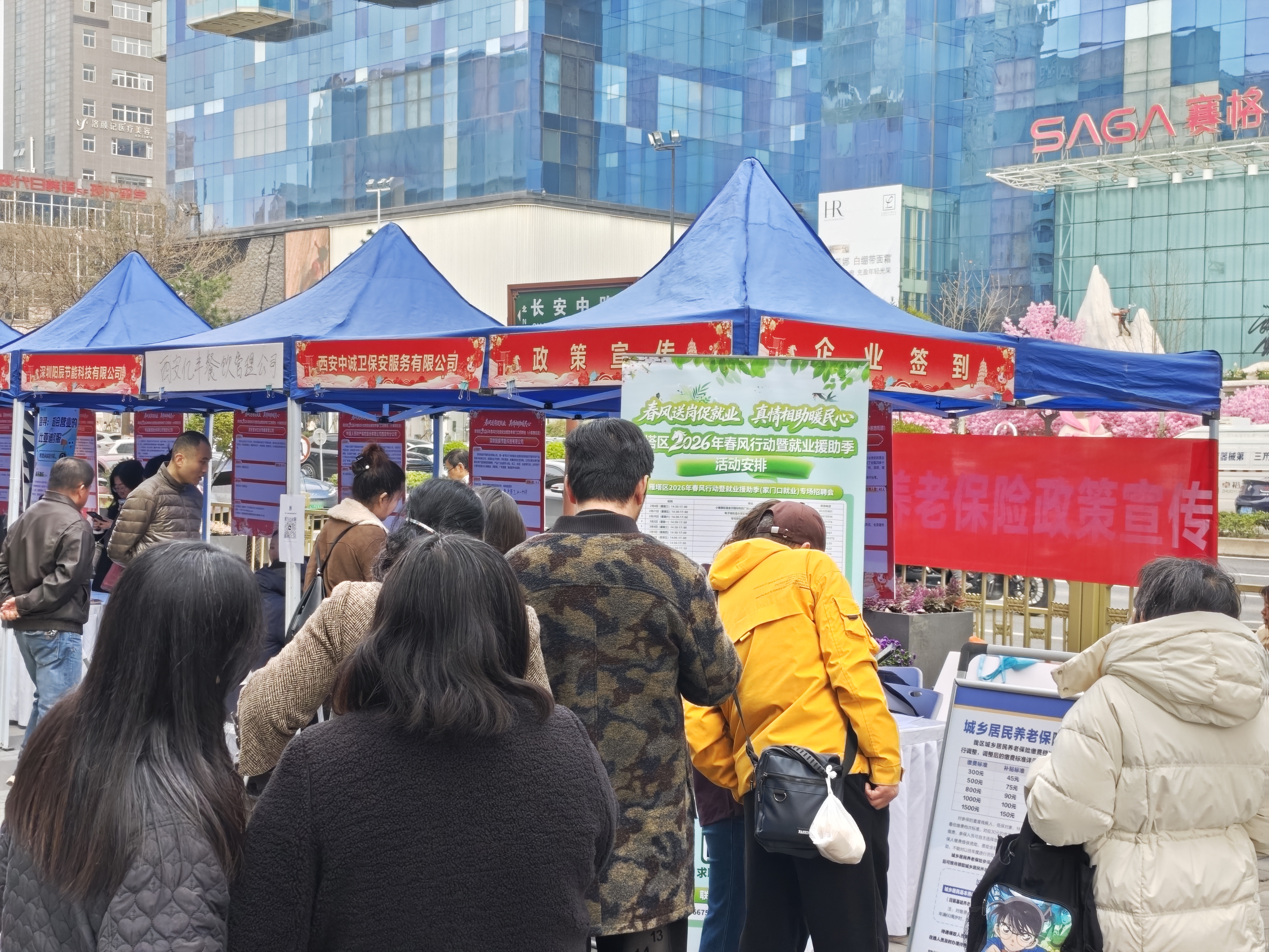 3月19日下午,雁塔区2026年春风行动暨就业援助季家门口招聘会(小寨路街道专场)在小寨天桥西北角顺利举办。这场“开在商圈里的招聘会”,将就业服务送到人流密集的核心区域,依托小寨十字的辐射优势,精准对接各类求职群体,为企业与求职者搭建起高效便捷的对接桥梁。