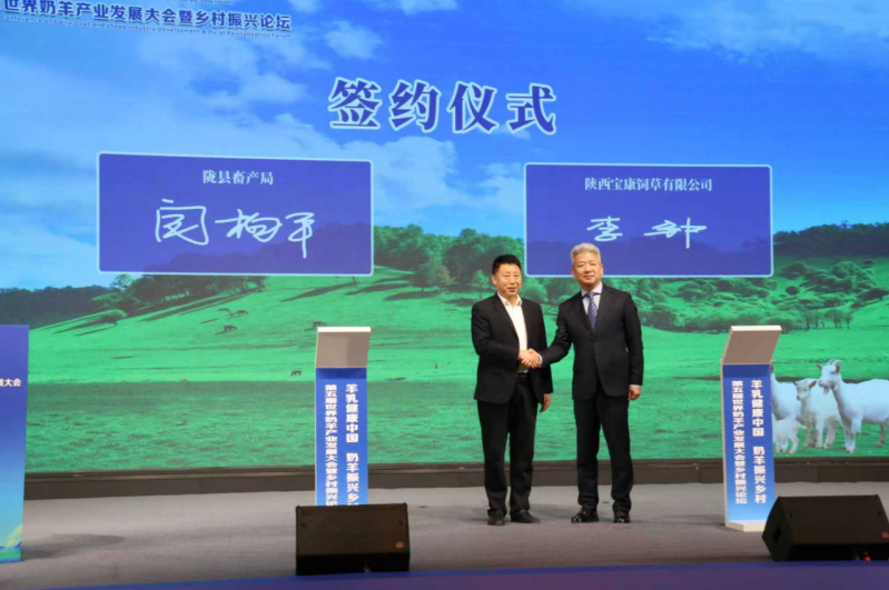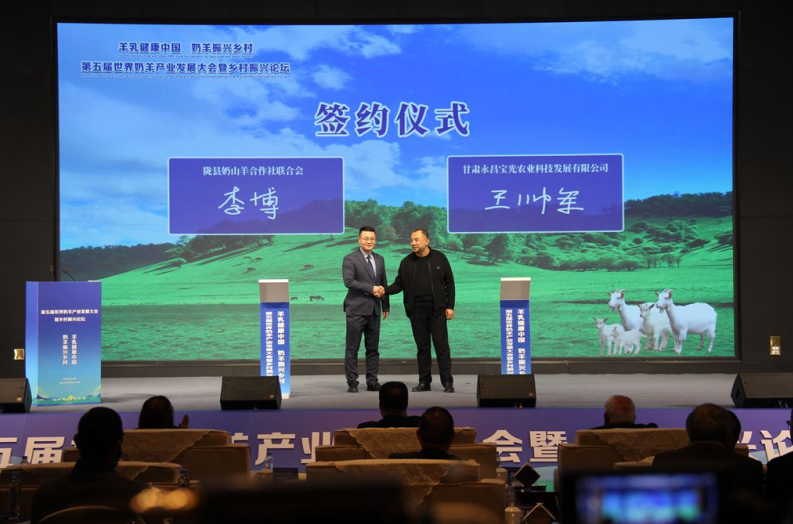 经第五届世界奶羊产业发展大会暨乡村振兴论坛中外专家评审,大会授予陇县“世界奶山羊全产业链示范基地”牌匾,授予陕西宝泰良种繁育有限公司“世界奶山羊良种繁育示范场”。陇县奶山羊合作社联合会与甘肃永昌宝光农业科技发展有限公司签订了秦陇优质饲草供应基地合作协议,陕西和氏乳业集团与上海然小二品牌管理有限公司签订了产品购销协议,陇县畜产局与陕西宝康饲草有限公司签订了陇县饲料加工厂项目建设协议。