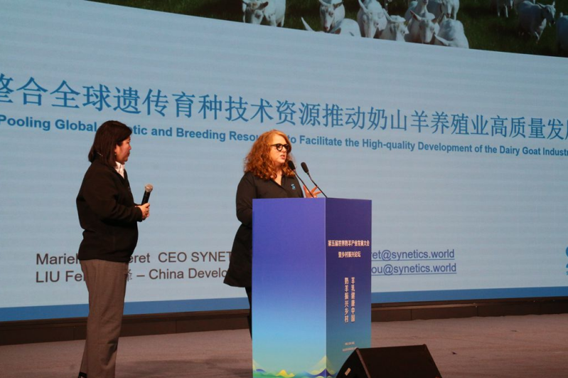 大会论坛环节,国际奶羊产业协会荣誉主席胡安·卡博特教授作了《奶山羊从业四十五年》报告,西班牙巴塞罗那自治大学GarardoCaja(卡哈)教授作了《监测羊和山羊的环境福利并减轻热应激的影响》报告。清华大学常智杰教授作了《羊奶外泌素的研究与应用》报告,陇县副县长陈银拴作了《奶山羊标准化养殖经验交流》报告。西安美牧生公司总经理StephanGibson(古施德)作了《奶山羊关键阶段的饲养管理-羔羊、围产羊》报告,北京莱澳特牧业科技有限公司总经理尤克强作了《以“综合服务中心+家庭牧场”模式破局:破解奶山羊养殖核心难题》报告。法国SYNETICSExport总经理MarieleBreheret(玛利亚)做了《法国冻精技术研发进展及冻精技术在奶山羊方面的应用成果》报告。