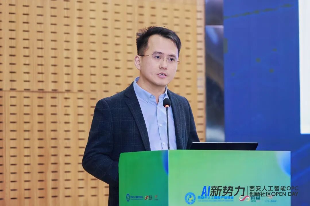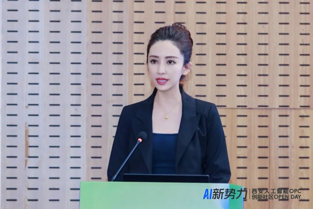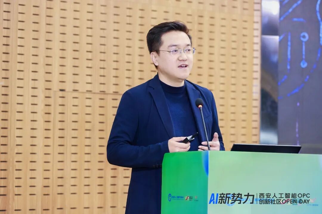 西安人工智能OPC创新社区运营总监张坤以《AI时代创业新范式——西安人工智能OPC创新社区》为题,从时代机遇、政策红利、产业基础、空间配套与赋能体系等多个维度,系统介绍了西安人工智能OPC创新社区的定位、服务与生态规划,并向与会嘉宾发出邀约,期待与更多AI创业者携手同行、共创未来。