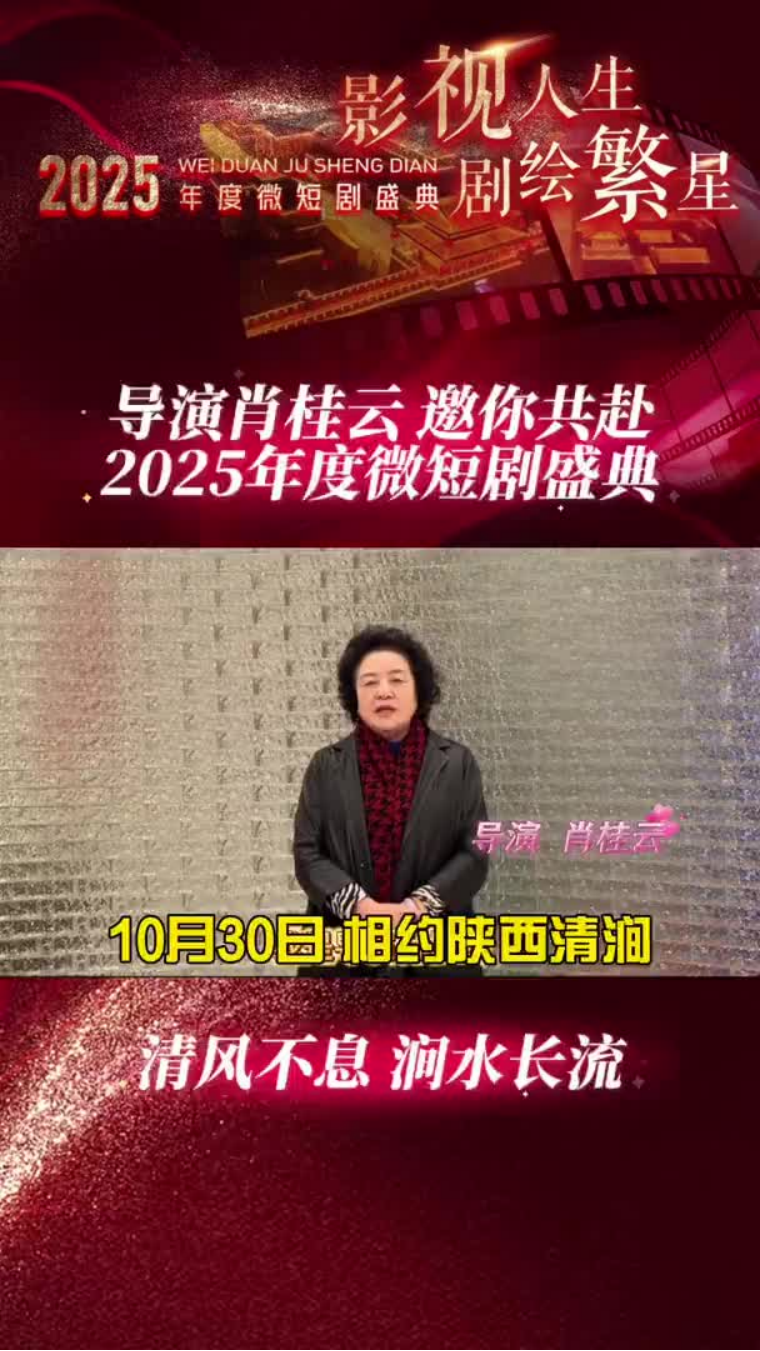 导演肖桂云向你发出诚挚邀约:2025年度微短剧盛典将于10月30日在陕西清涧隆重举行!诚邀你共襄盛举,把握行业脉搏,共鉴微短剧的璀璨未来。精彩不容错过,我们不见不散!