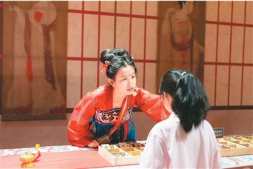 今年6月开展的大唐生活美学展在策展理念上大胆创新,与热播影视剧IP结合,将“体验”做到了极致。策展团队编制了《唐代“穿越”指南拓展知识册》,设计了胡商、乐伎、礼官、武官、书生5种身份,观众可在观展前抽取身份卡,根据卡面线索寻找文物,实现“角色扮演式”观展。尾厅还原了唐代长安西市场景,设置太白酒肆、兰台香署、煎茶坊、博弈馆、唐风剧场等体验空间,增强互动性与趣味性。博物馆剧场上演诗剧《看尽长安花》,为观众奉上精彩的视听盛宴。
