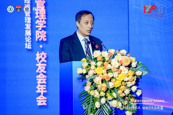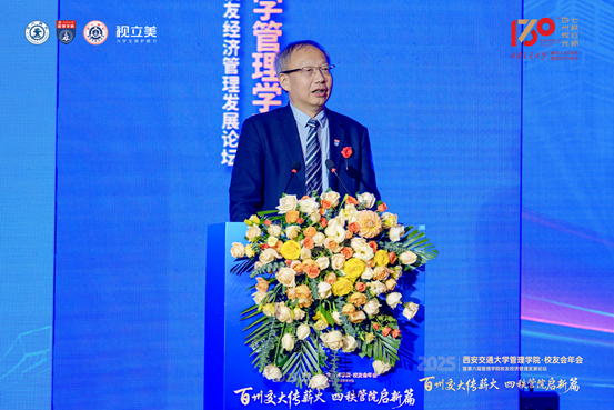 管理学院院长冯耕中在主旨发言中全面展示了学院2025年发展成绩单:招生规模实现逐年稳步扩大;持续创新产学研融合机制与制度,深化产学研合作,赋能科技创新;扎实推进国际合作建设,打造西交国际商学院,促进区域经济合作。学院将始终赓续西迁精神,持续强化学科特色、提升人才培养质量、深化创新服务效能,期待与全体校友同心聚力、携手同行,在数字经济、绿色低碳、智能制造等新兴领域持续拓展合作空间,共谱管理教育与产业发展深度融合的崭新篇章。