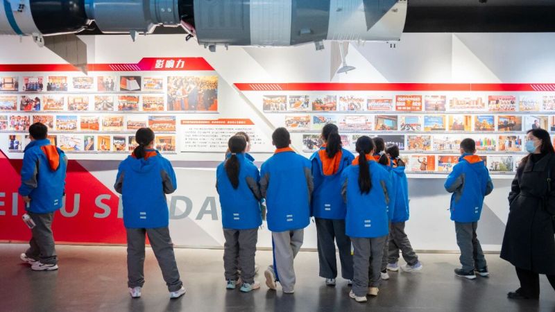 在思政课开始前,来自全市各区县、开发区的学生代表分批次前往钱学森生平业绩展馆参观。在一幅幅珍贵图片、一件件历史实物前,学生们驻足端详、凝神聆听,近距离触摸科学巨匠的奋斗足迹,深切感悟炽热浓烈的家国情怀与崇高的科学精神。