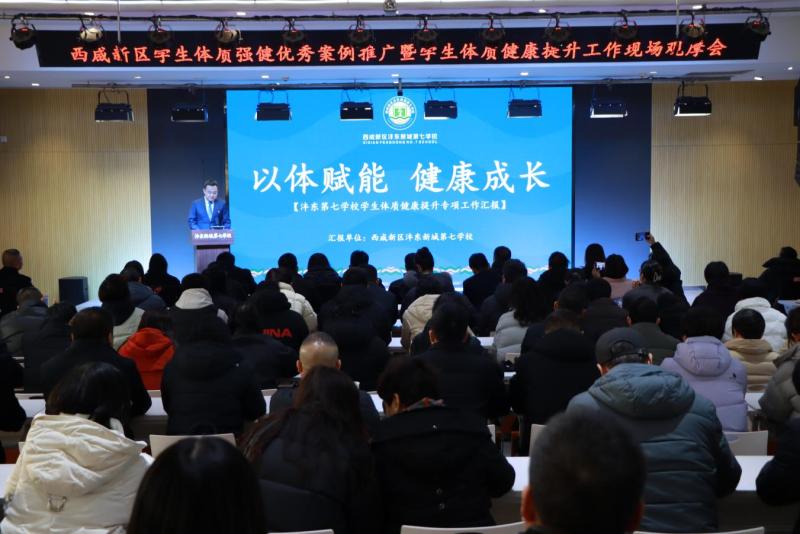 冬日暖阳沐校园,健体强魄正当时。2026年1月16日,西咸新区学生体质强健优秀案例推广观摩会暨学校体育工作推进会在沣东第七学校召开。新区教育体育局分管领导出席会议并部署工作,各新城工作部、全区中小学及中职学校相关负责人共170余人参加会议,共同谋划学生体质健康提升新篇章。