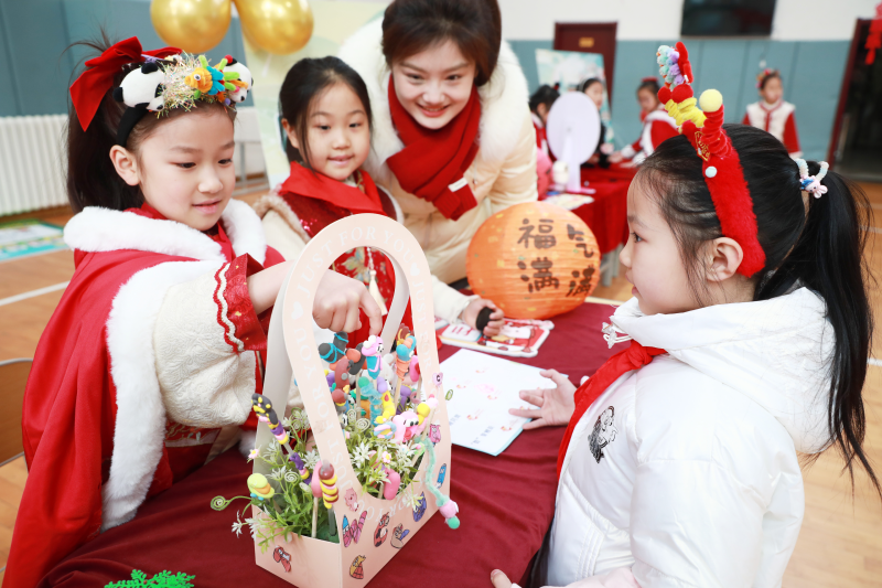 一年级萌娃在“语文乐园”中策马闯关:拼音藏在福袋里,词语骑在“小马”上,句子从“吉祥红包”中抽出……知识,就这样被悄悄“玩”进了心里。