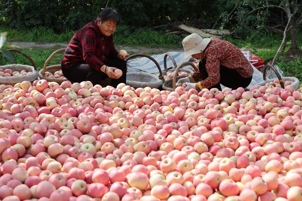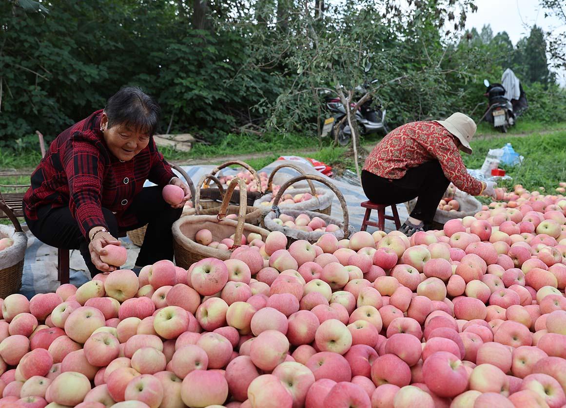 三秦都市报-三秦网讯(记者马昭)10月13日,连日阴雨的咸阳乾县终于迎来晴好天气。在新阳镇三星村,果农王印锋抓住这难得的好时机,带领家人和村民忙着采摘成熟的红富士苹果。