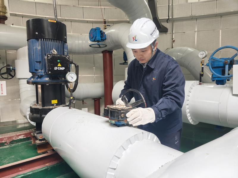 “换热站是供暖系统的关键枢纽,一头连着城市主干供热管网,一头通着千家万户的暖气管道。”贺海朋一边核对仪表数据,一边介绍,供暖季启动前,班组已对辖区直管到户换热站内阀门、换热设备、循环泵、压力表等所有核心部件逐一排查,校准各项运行参数,确保每一台设备都以最佳状态“健康上岗”。