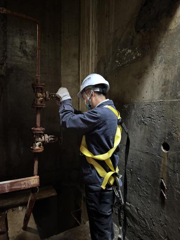 10时47分,在新城区华清学府城小区门前,贺海朋与班组搭档全副武装,两人熟练地掀开井盖、稳妥挂好安全绳索,循着爬梯一步步深入6至7米深的井下作业点。“这里是小区地势最高点,管道上翻处容易积聚空气形成气堵。”贺海朋一边说着,一边缓缓拧开管道上的大型排气手轮,“呲呲呲”的气流声随即响起,不一会儿便转为连续的水流声。排气后,他们不忘俯身仔细查看管道接口、焊缝处是否有渗水痕迹。“排气是供暖前的关键步骤,气堵会导致热水循环流量变小,直接影响居民家中供热效果。”贺海朋介绍,连日来,班组全员穿梭在辖区户外管线之间,逐段逐点开展排气作业,同步排查管道渗漏隐患,全力保障供热管网循环顺畅,为暖流平稳入户扫清障碍。