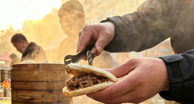 来吧!来西安,拿起一个热乎乎的馍,夹上你喜欢的菜和肉,一口咬下去,感受千年古都的温度与味道。