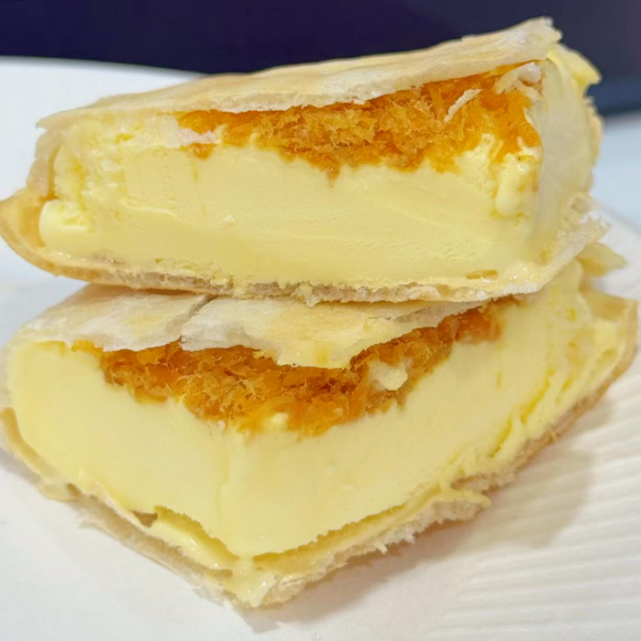 2025年夏天,这股创新风潮延伸到了“舌尖上”——西安老字号“钟楼冷饮”推出了一款名为“冰馍馍”的冰淇淋,外形仿制白吉馍标志性的“铁圈虎背菊花心”,内馅则创新性地采用了咸奶油芝士与鸡肉松,打造出独特的咸甜口感。自上市以来,这款创意雪糕迅速在社交媒体走红,成为游客打卡西安的新宠,被网友亲切地称为西安写给游客的“舌尖情书”。