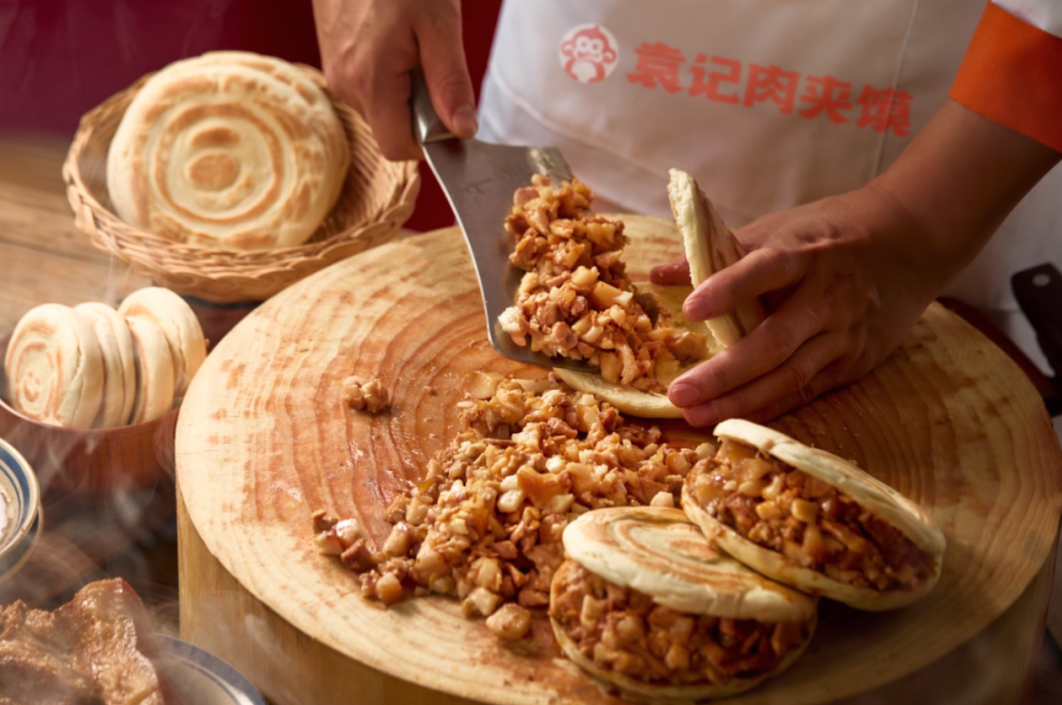 与此同时,西安的“馍文化”也深深扎根于老字号的非遗传承之中。以“袁记肉夹馍”为例,其品牌历史可追溯至20世纪20年代,历经百年发展,如今已成长为拥有近500家连锁门店的知名老字号。