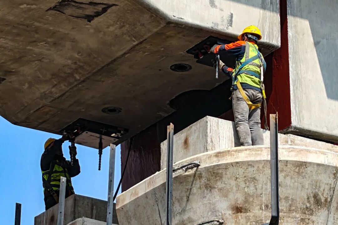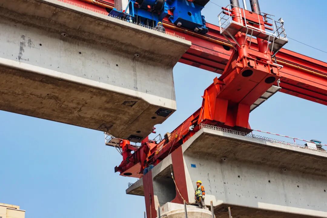 面对JQ900B架桥机无法满足800米小曲线架设的困难,项目团队引入ZYLC1000运梁车配合DJ900架桥机进行专项攻坚。技术团队联合设备厂家优化液压同步系统,在400米曲线半径的极限曲线段,测量人员加密复测频次,利用北斗定位系统实时调整姿态,最终实现了箱梁支座中心线与桥墩设计线的准确对位。