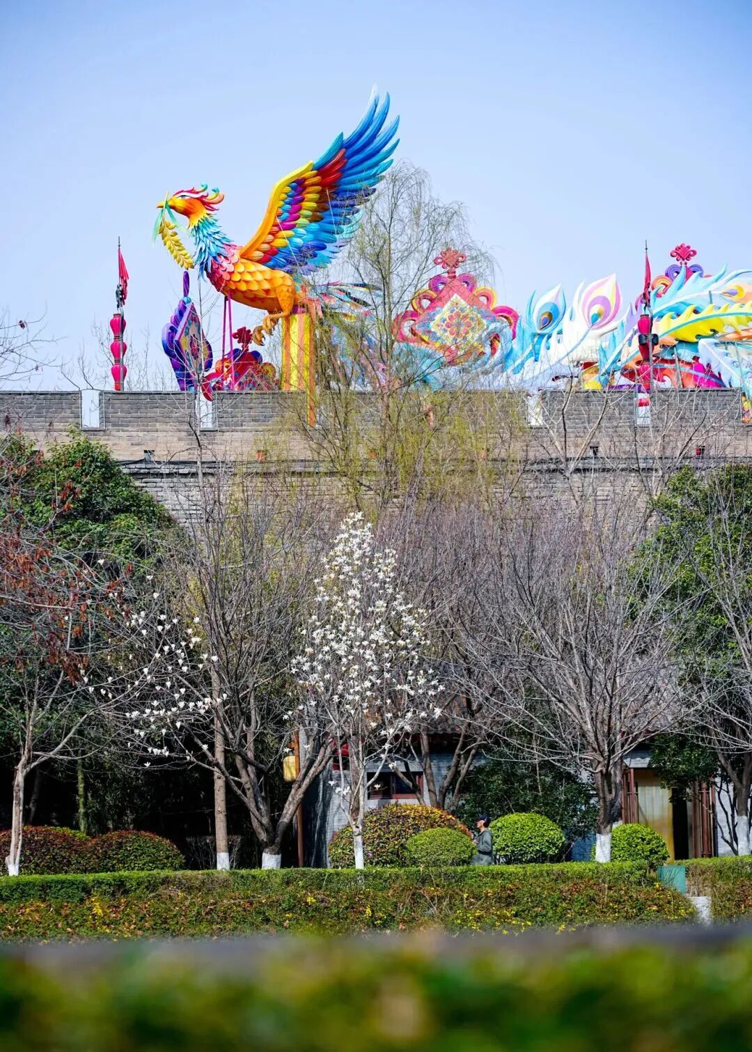 春风已至,繁花已开,城墙之上,灯火依旧璀璨。这场跨越新春与春分的光影盛宴,不仅留存着新春的热烈与温情,更浸润着春日的温柔与浪漫。白日里,可漫步城墙,沐暖阳、赏繁花,看古砖映春色;夜幕降临时,可驻足灯前,观光影、品古韵,让灯火映笑颜。