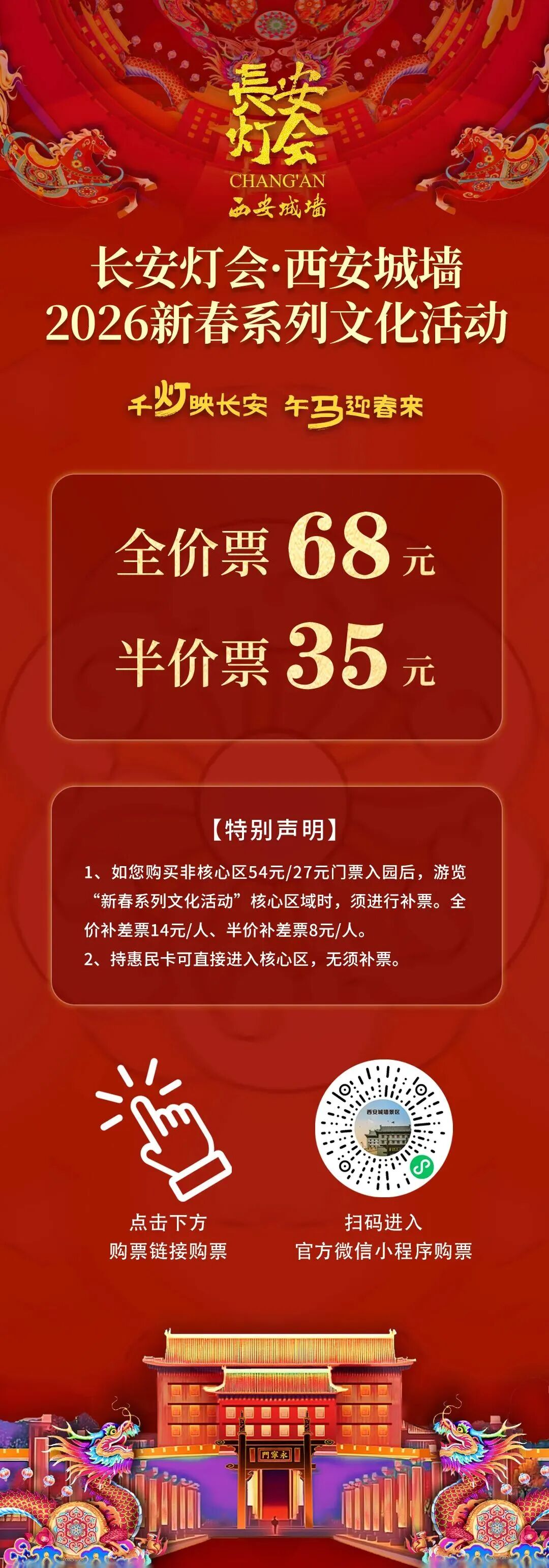 更低的价格,不变的精彩,让每一个热爱长安的人,都能轻松踏上城墙,在灯火与春风中,赴一场属于自己的长安春夜之约。