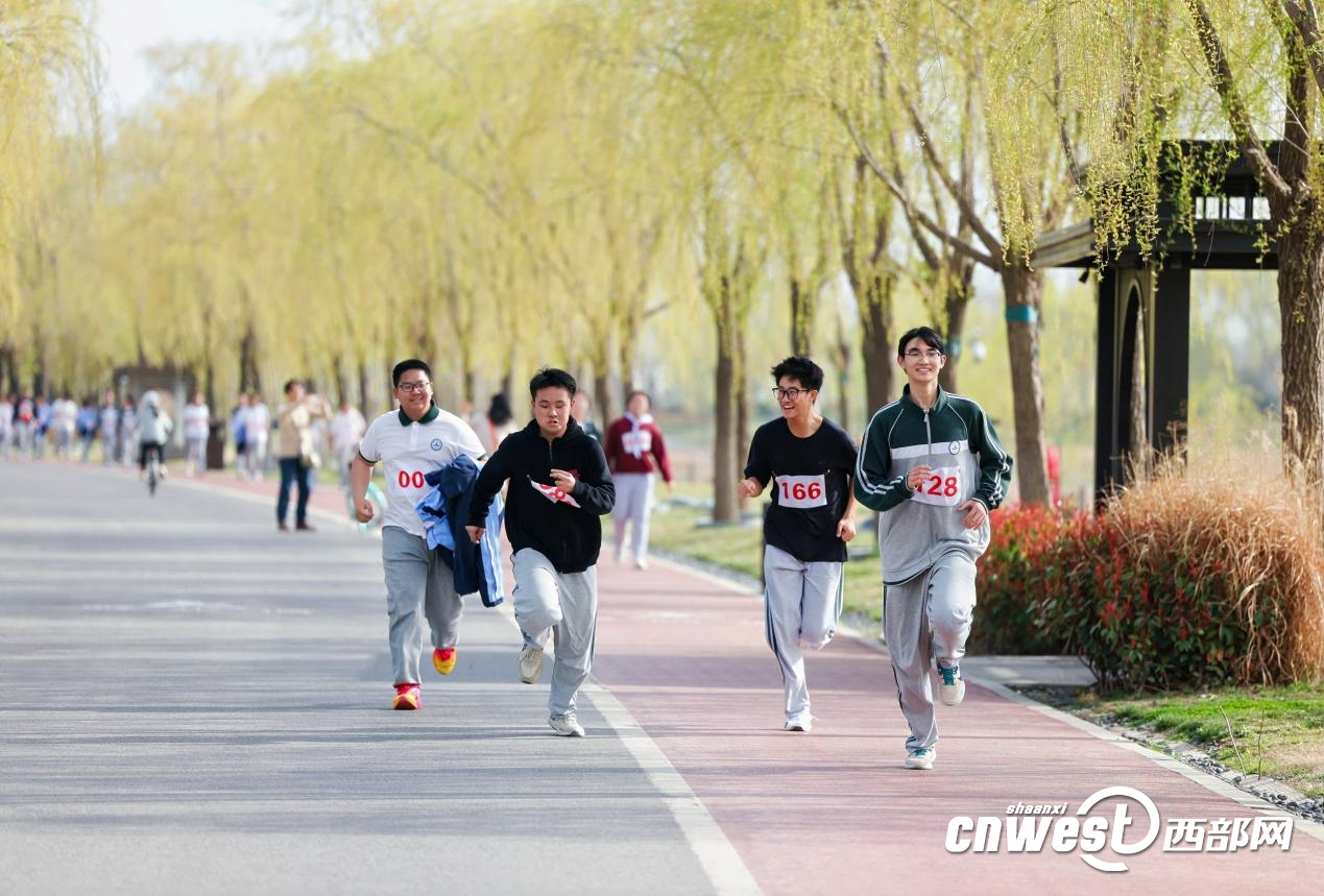 发令声响后,师生们迎着春风奋勇向前,在赛道上挥洒汗水、并肩前行,既沉浸式感受了昆明池的生态风光与人文底蕴,也充分展现了当代学子朝气蓬勃、奋勇争先的精神风貌。