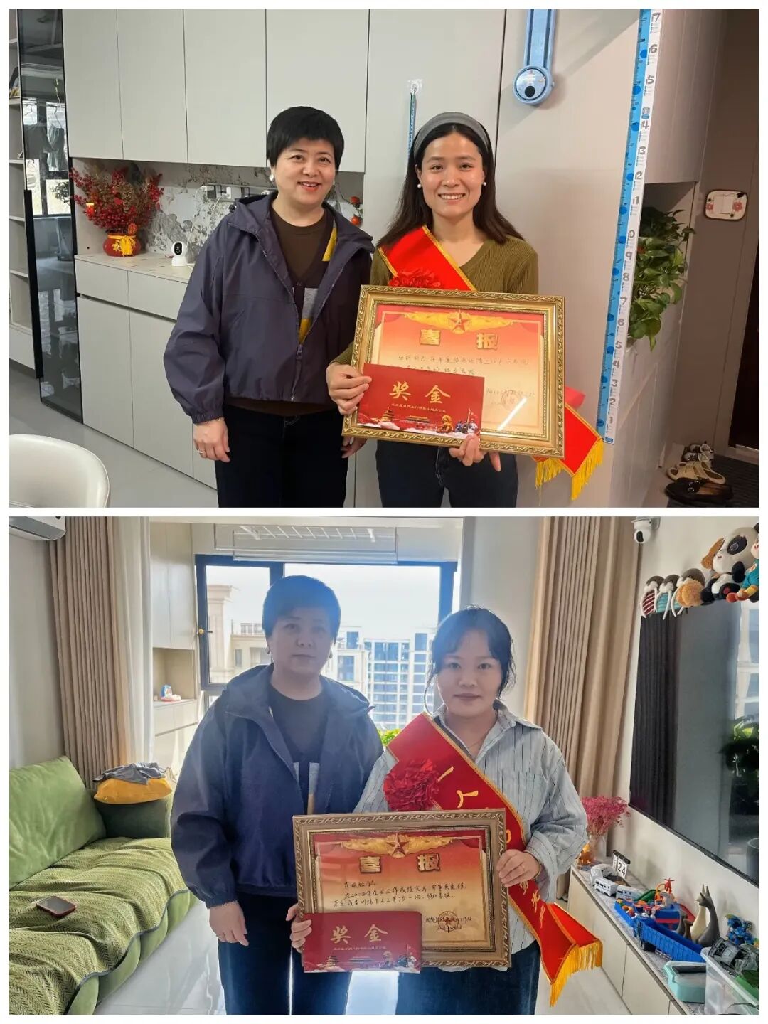 3月24日,徐家湾街道碧桂园嘉誉社区将立功喜报、光荣牌、慰问金送到军属手中,让军人家庭共享荣光、感受尊崇。