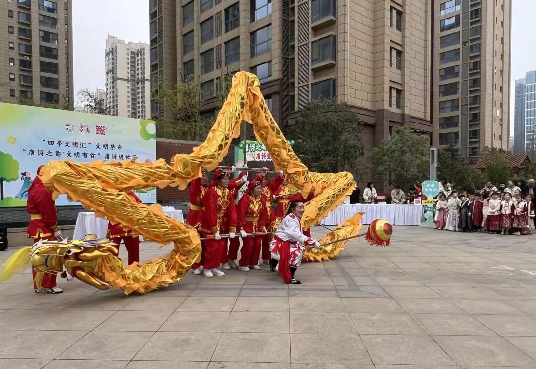 上午10时,激昂鼓点响起,社区文艺志愿服务队舞龙翻腾,拉开活动序幕。现场精心打造“唐诗之都·文明有你”“四季文明汇·文明集市”两大主题打卡区,居民手持“文明集章卡”,穿梭于四大功能板块,在沉浸式互动中集章兑礼,乐享文明“大集”的别样精彩。
