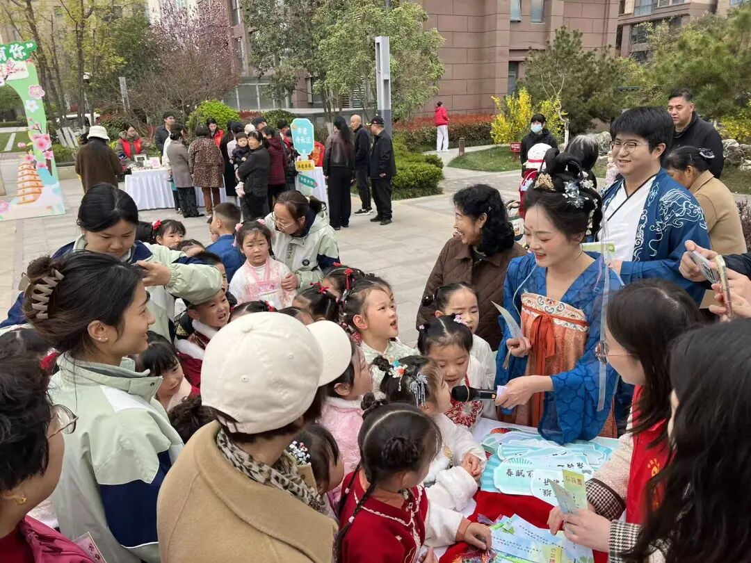 活动现场,主持人身着汉服穿梭其间,与居民亲切互动、趣味问答,送出定制文创小礼,现场气氛热烈而温馨。