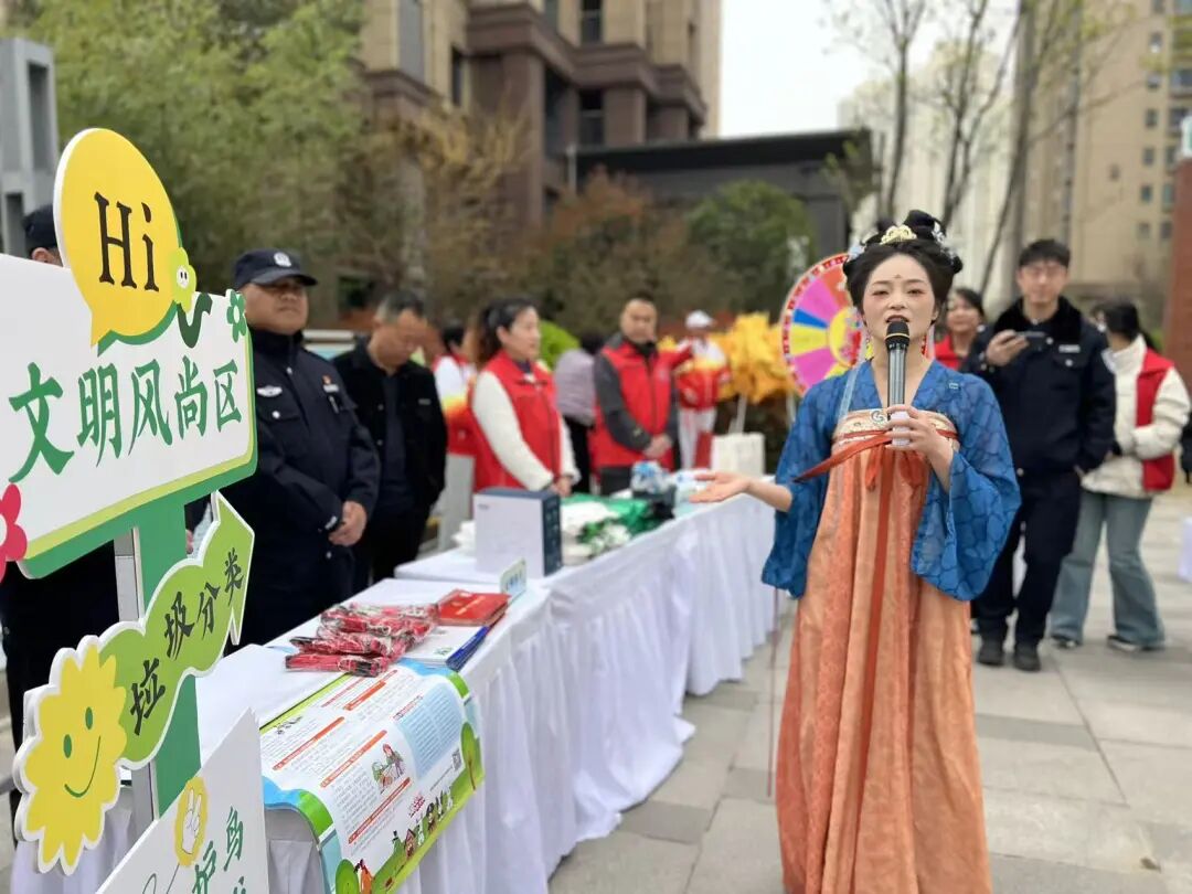 长安区城管局生活垃圾分类服务中心、公安航天分局、星河路卫生服务中心、中铁新城幼儿园、西安净洗千华家政服务有限公司、九匠艺术部等多家单位协同参与,充分彰显“政府主导、社会协同、群众参与”的文明实践共同体格局。