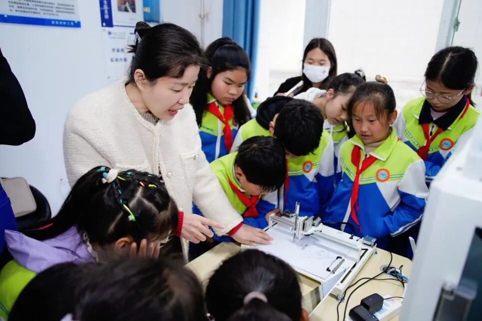 当同学们在兵器科技馆铭记军工发展的过往与今朝;在智造创新工场感知科技赋能国防科技的未来趋势;在兵器美学美育中心以创作守护热爱、绽放灵性;走进兵器设计室完成手工兵器设计图案后,西安工业大学“兵器小镇”科普中心负责人、材料与化工学院博士生导师马爱洁教授来到学生们中间进行了精彩有趣的启发式科普提问讲解,她祝愿孩子们以武器设计为载体,守护热爱、挥洒创意。祝愿同学们怀揣这份初心与热情,勇敢追逐梦想,用努力创造属于自己的璀璨未来。热切希望同学们以梦为马,不负韶华,将探索的热情、创造的智慧化作前行的力量,在成长的道路上坚守初心、追逐梦想,为国防科技事业贡献青春力量。
