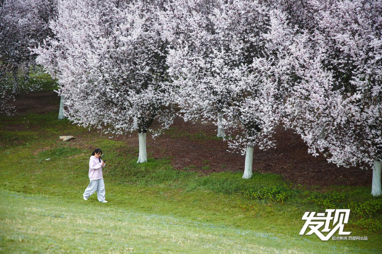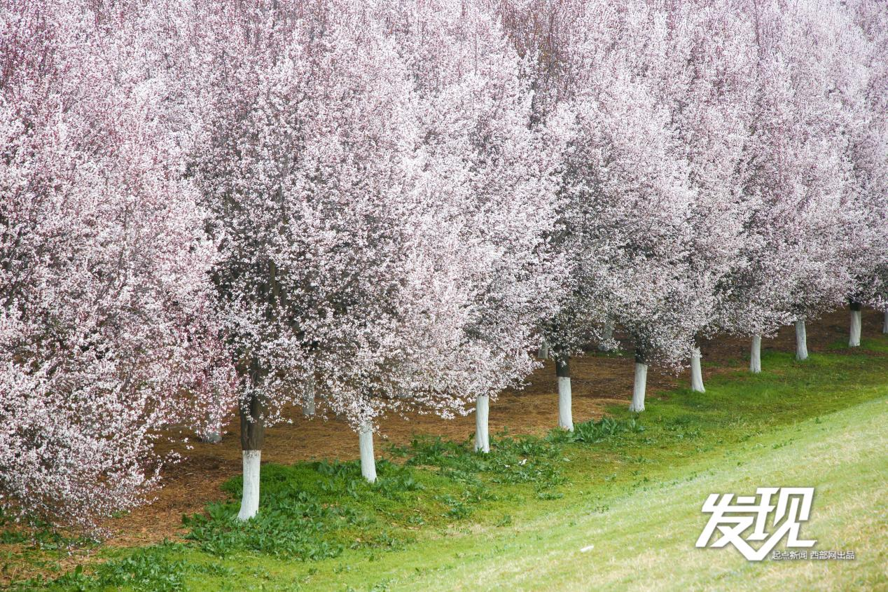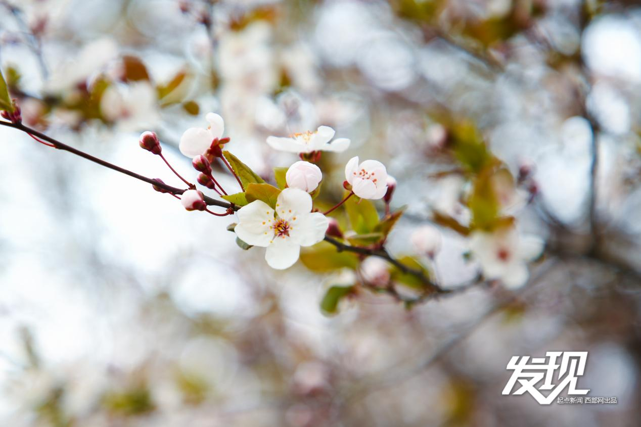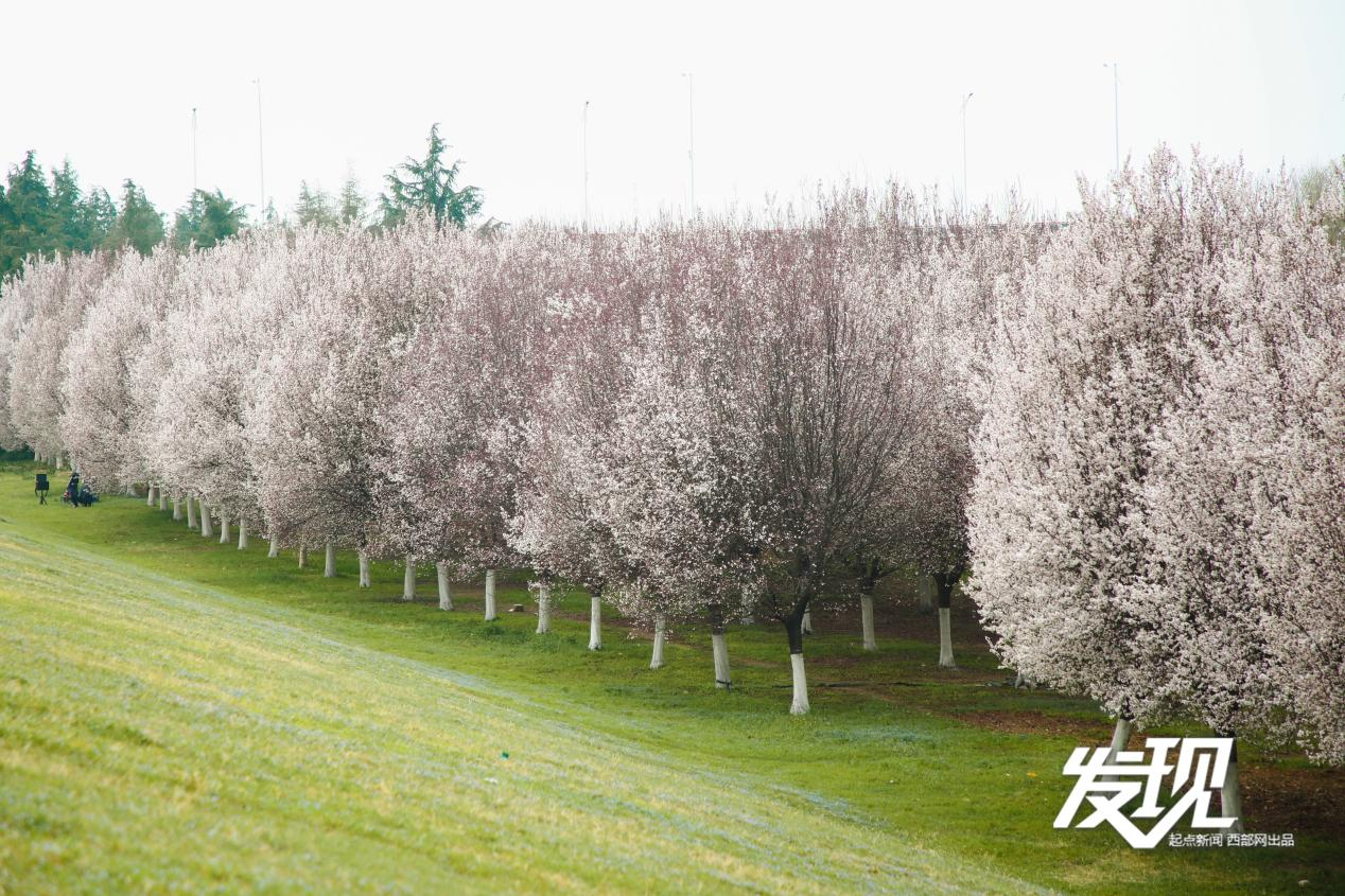 紫红色的叶丛托着素白花瓣,与渭河风光、城市脉络相映成趣,既藏着城市绿化的细腻匠心,也透着西安春日最质朴的美好。