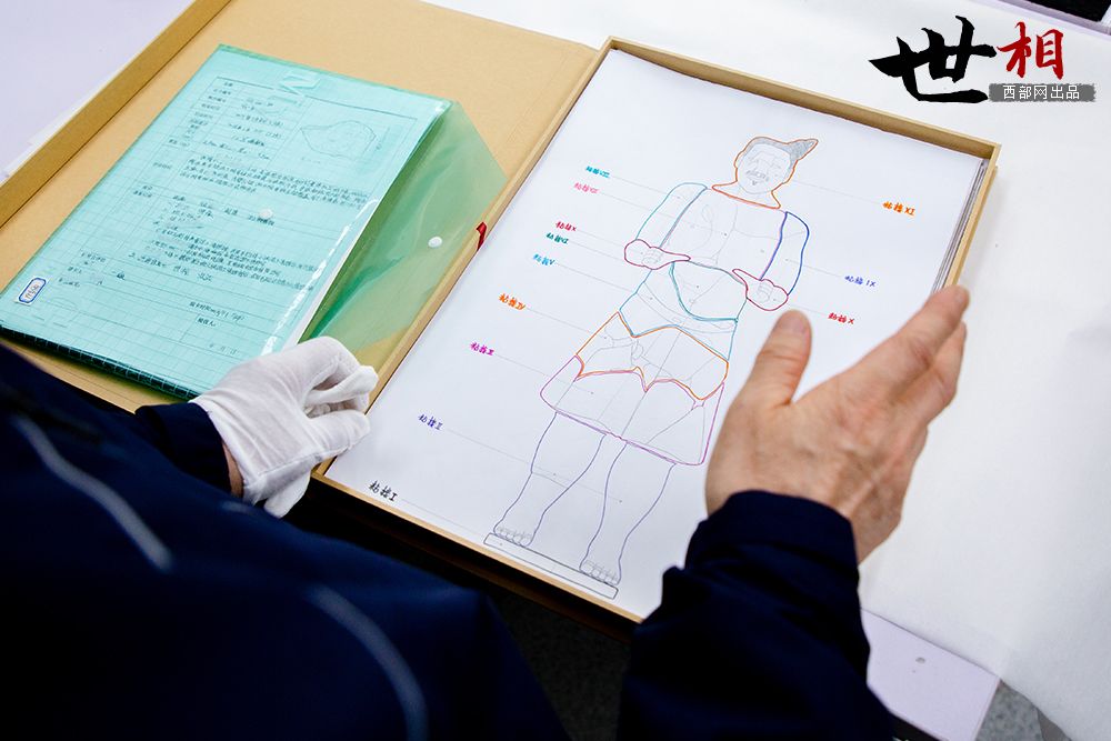 工作间的柜子里,整整齐齐码着一排厚厚的文件夹,里面记录着兵马俑的“身体状况”和修复的全过程,是每个兵马俑的专属档案。“很多人觉得,文物修复不就是刷一刷、粘一粘吗?哪有这么简单!”马宇称,修复一个俑需要经过领取信息、检测分析、绘图、清理、加固、保护、拼对、粘接等数道工序,每一个环节都需要记录,这也要求文物修复师要懂绘图、会拍摄、能拼接,“十八般武艺样样精通”。