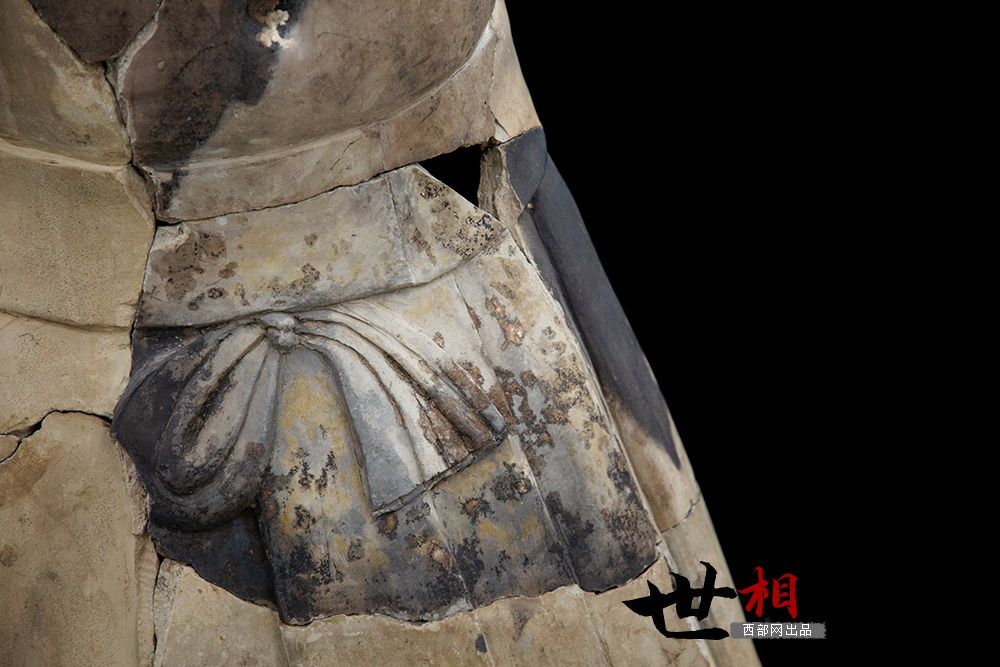 马宇工作室的墙上,挂着几幅他手绘的秦俑画像,光影层次分明。其中一幅画的是石铠甲,这件文物,当时他和团队耗时一年多才完成修复。“画这张画的时候,我就想怎么能把它展现得更神秘、更吸引人,这也是我对秦文化的理解。”