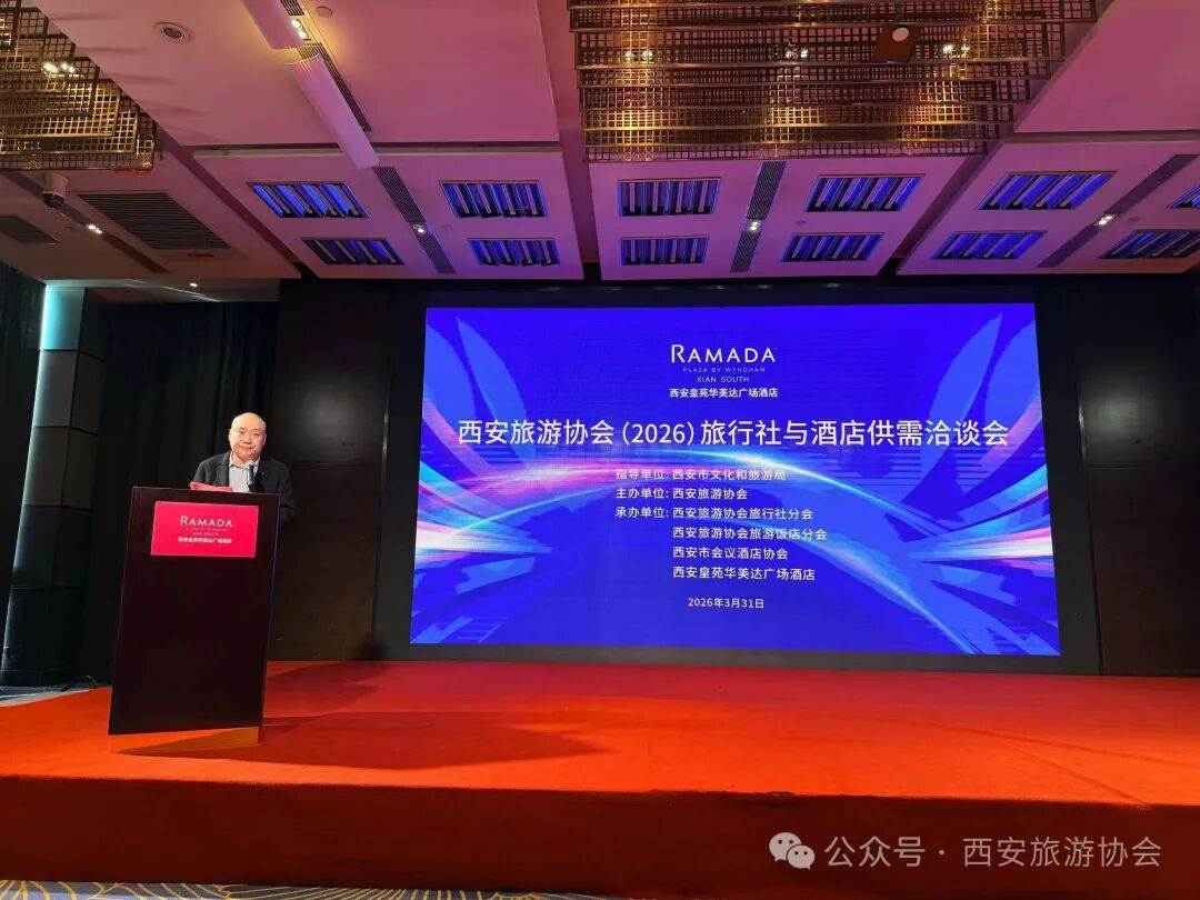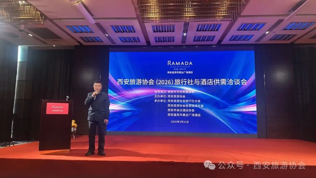春潮涌动,合作共赢。3月31日下午,在西安市文化和旅游局指导下,由西安旅游协会主办,西安旅游协会旅行社分会、西安旅游协会旅游饭店分会、西安市会议酒店协会、西安皇苑华美达广场酒店共同承办的“2026西安旅行社与酒店供需洽谈会”在西安皇苑华美达广场酒店隆重举行。800多位来自全市及周边兄弟城市的酒店及旅行社企业代表齐聚一堂,共话合作新机遇,共谋发展新篇章。